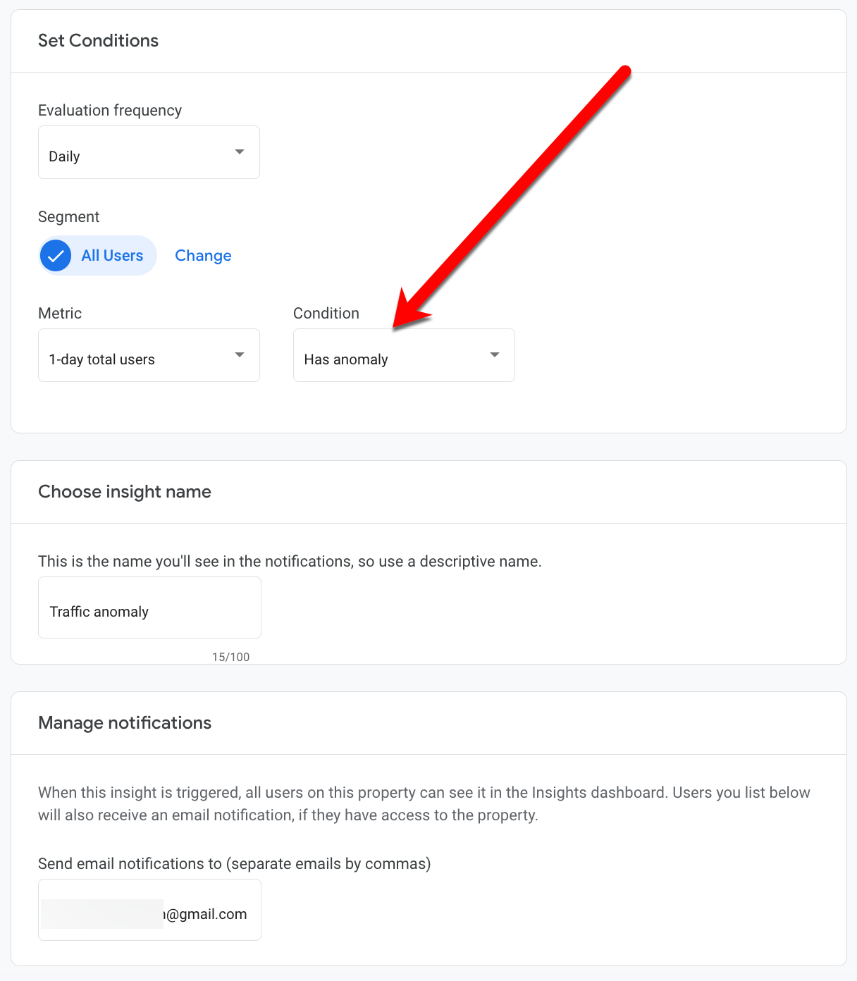 GA4 (any fans of it here? I don’t like it either) but we must work with what we have! While we are discussing ranking factors, you have to keep an eye on your traffic through all those updates and hysteria. So here you go: GA4 Analytics Insights allows you to set up email traffic alerts based on a variety of criteria, including advertising revenue changes, conversion, or suspicious traffic fluctuations. For SEO purposes, I suggest creating an alert that would trigger based on traffic decreases. You can choose what traffic changes you’d like to be alerted of. It could be a certain percentage of decrease in traffic, a certain change in traffic, or just an anomaly (in the latter case you let Google Analytics decide what they think looks like a weird fluctuation you need to be aware of). So go ahead and set up yours! You can create up to 50 custom insights per property, so set up a few of them to be able to choose which ones alert you of the essential changes.