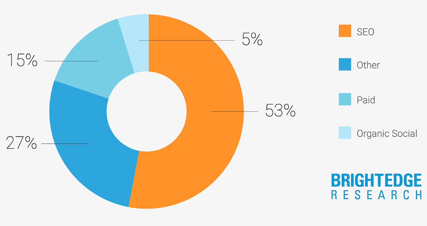 According to Brightedge, despite several major shifts in consumer behavior, the rise of mobile search, and the dramatic changes to the Search Engine Results Page layouts, including Local 3-Pack, Knowledge Graphs, Videos, and Featured Snippets, on average organic traffic drives half of traffic to websites across the world (according to another study by Sparktoro, it is even more).