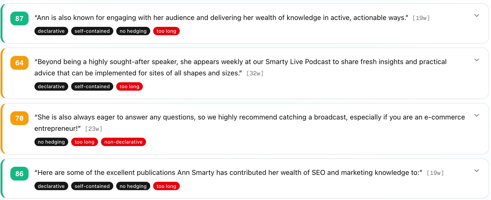 Another interesting concept Daniel’s study has introduced is called “atomic facts”. Daniel has found that LLMs prefer short sentences that carry a lot of meaning: