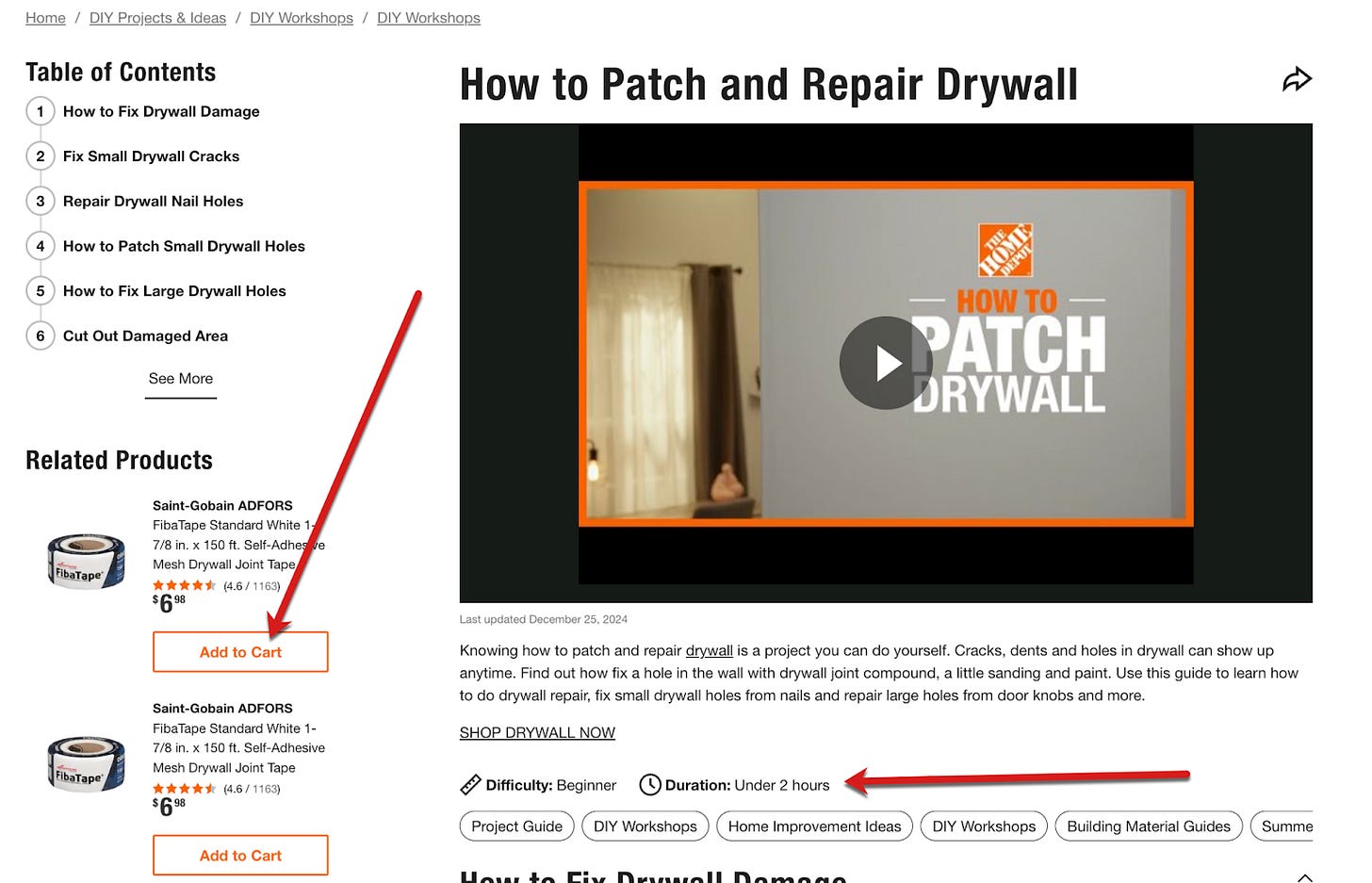 For example, Home Depot produces a lot of problem-solving content that lists their products (and links directly to product pages) as part of the solution: