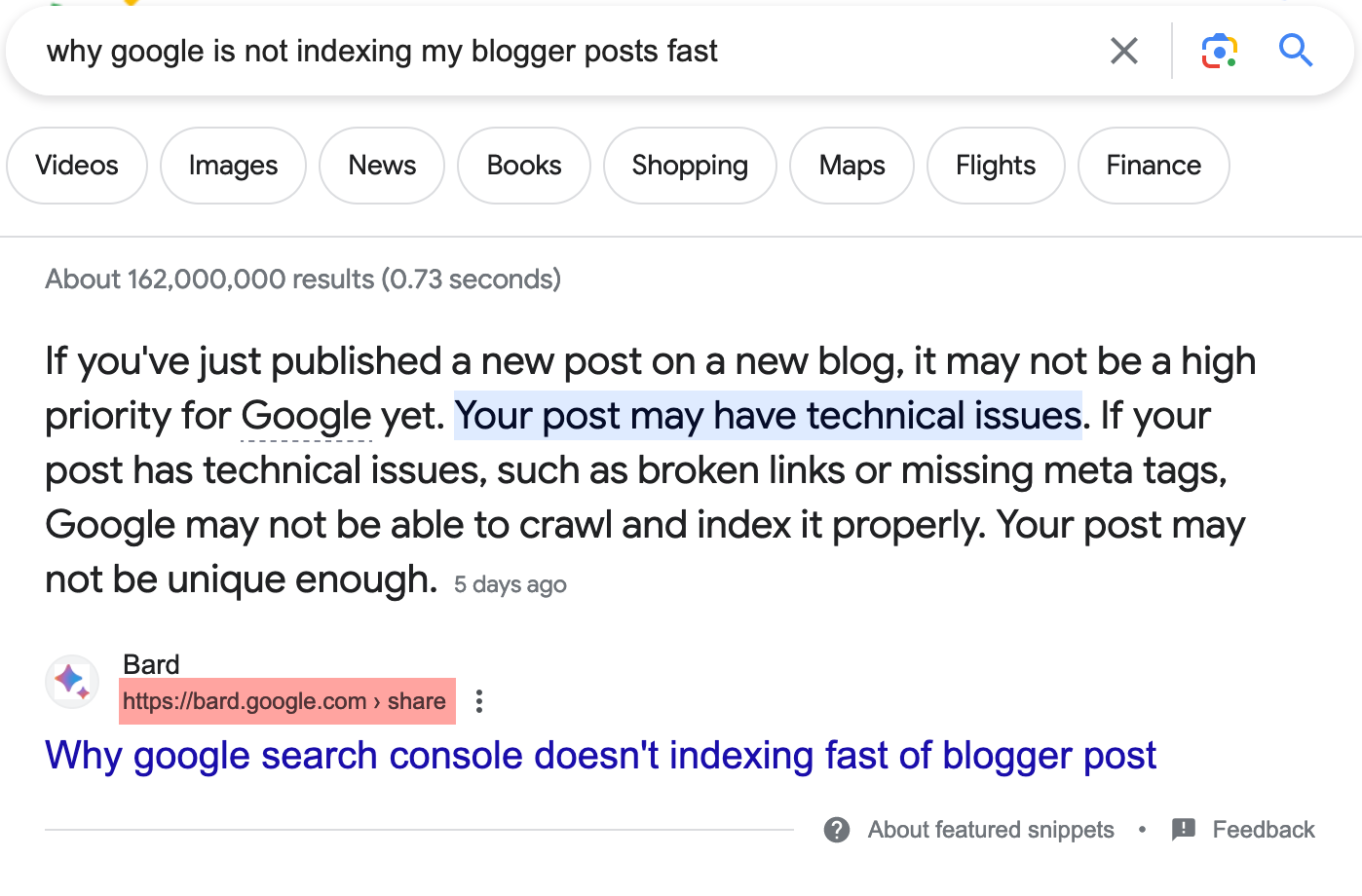 In other news, Google is also featuring its own Bard-generated responses (Google’s Danny Sullivan has promised it Bard will be deindexed soon).
