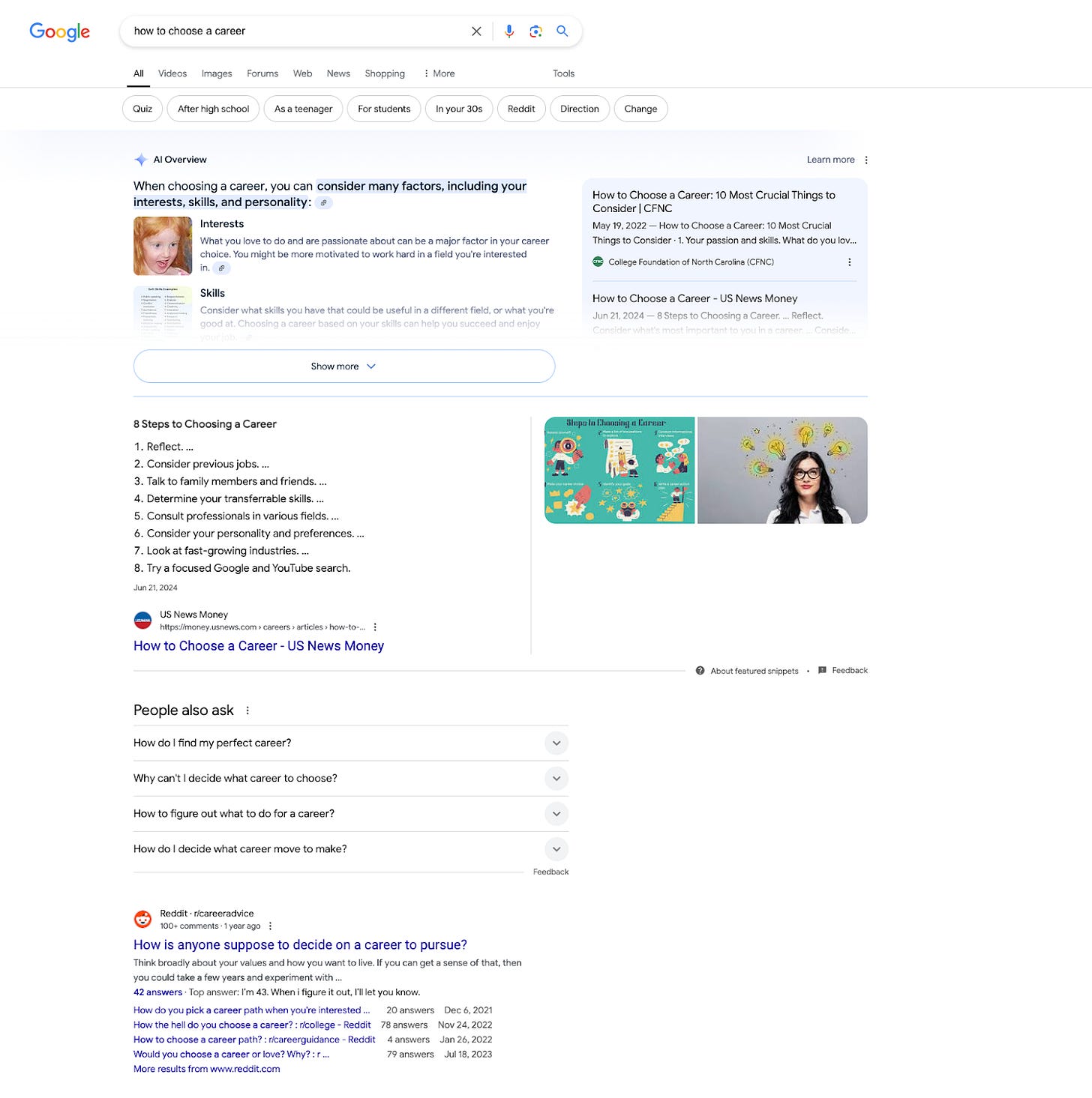 I expect things to change many times. At some point, Google will realize that the abundance of overlapping quick answers (AI Overviews immediately followed by quick answers in featured snippets, immediately followed by People Also Ask, immediately followed by Reddit packs… Should I go on?)