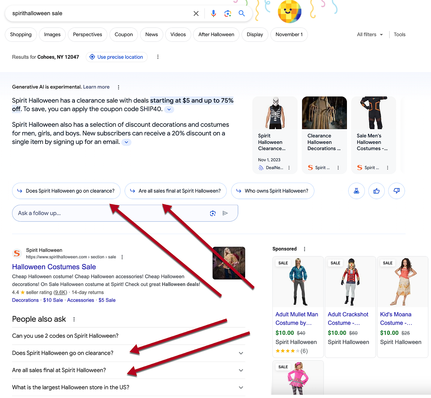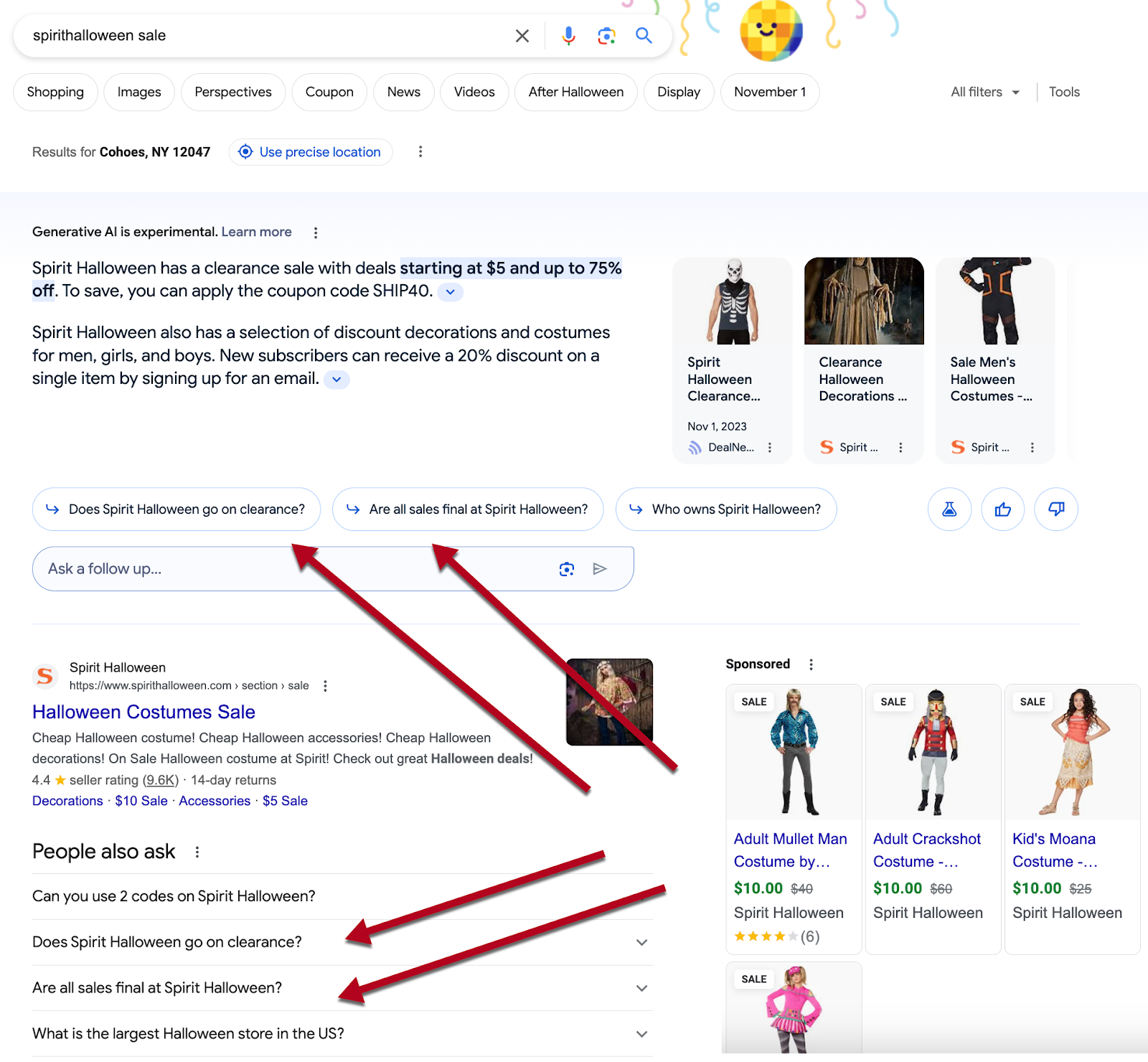 Organic search results encourage searchers to ask more and more questions. Branded “People Also Ask” boxes prompt searchers to explore brands further. SGE snapshots include “Ask a follow-up” questions which often correlate with questions suggested by “People Also Ask”: