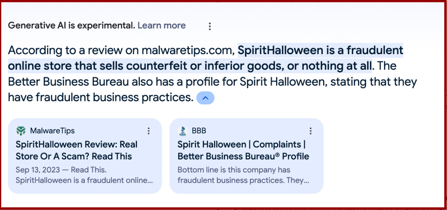 Chances are good that Google’s AI snapshots will choose to summarize pages filled with negative reviews.