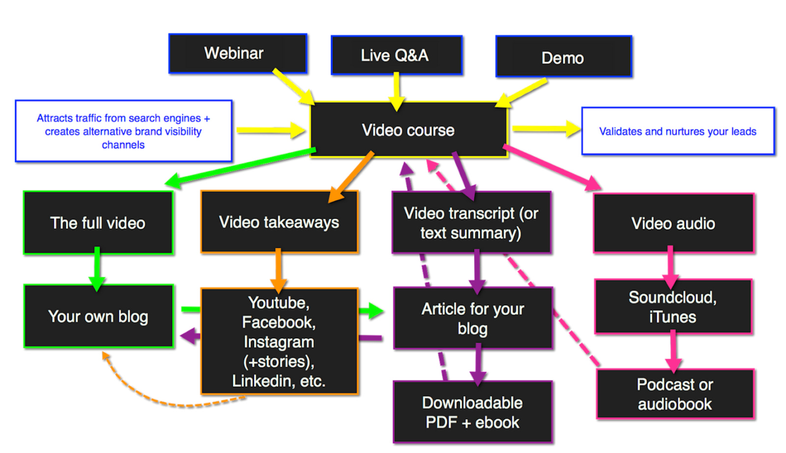 Let’s say, you’ve been doing a series of interviews with influencers. You could simply publish those interviews on Youtube and be done with that. But instead, you can turn them into: