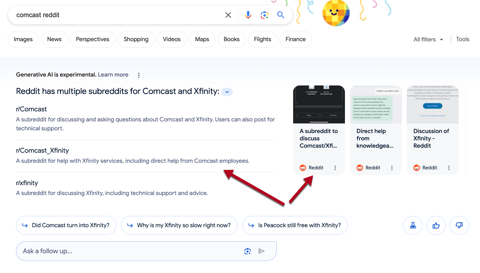 By maintaining active brand-owned subreddits, Comcast controls top organic positions for its brand-name search as well as Google’s SGE answer.