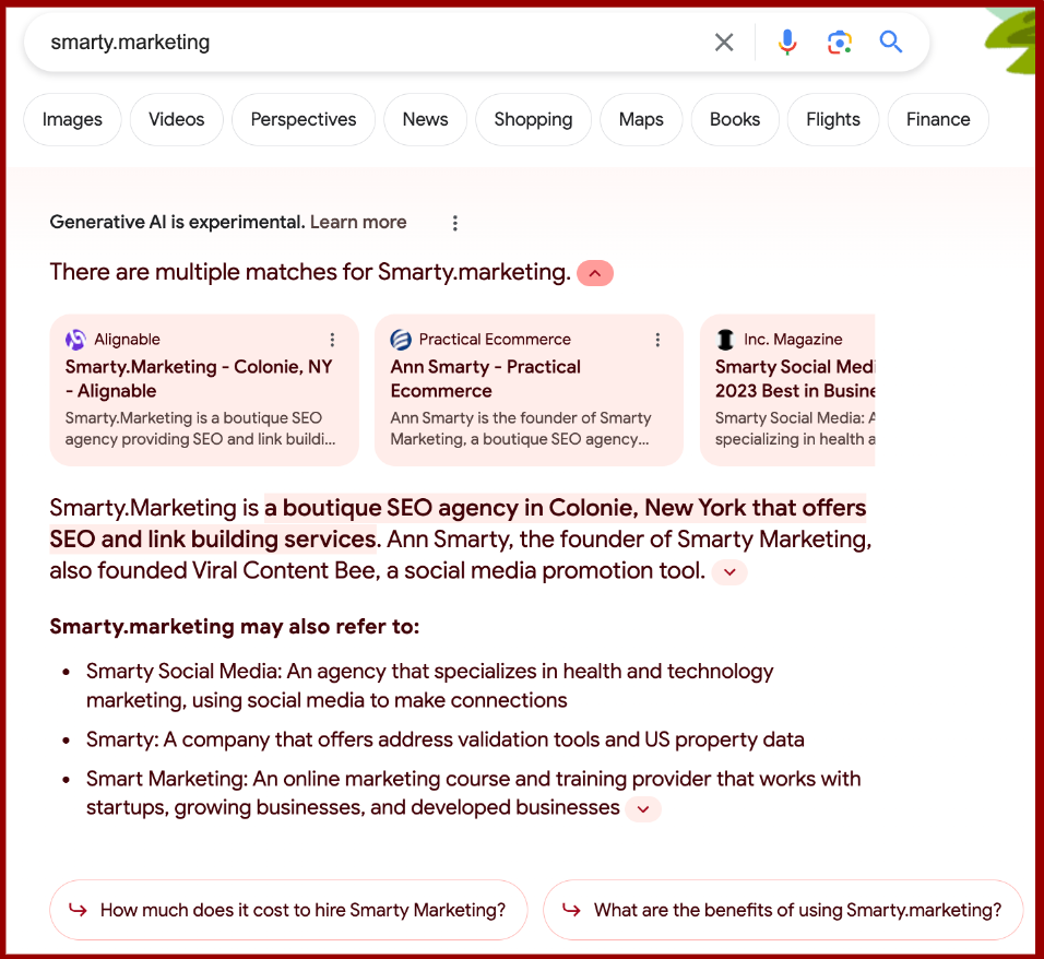 Suppose Search Generative Experience (SGE) becomes a public feature. In that case, all these search journeys are going to be even harder to control because you never know which results will be picked to show up in an AI snapshot for your important queries.