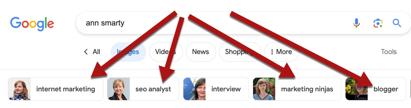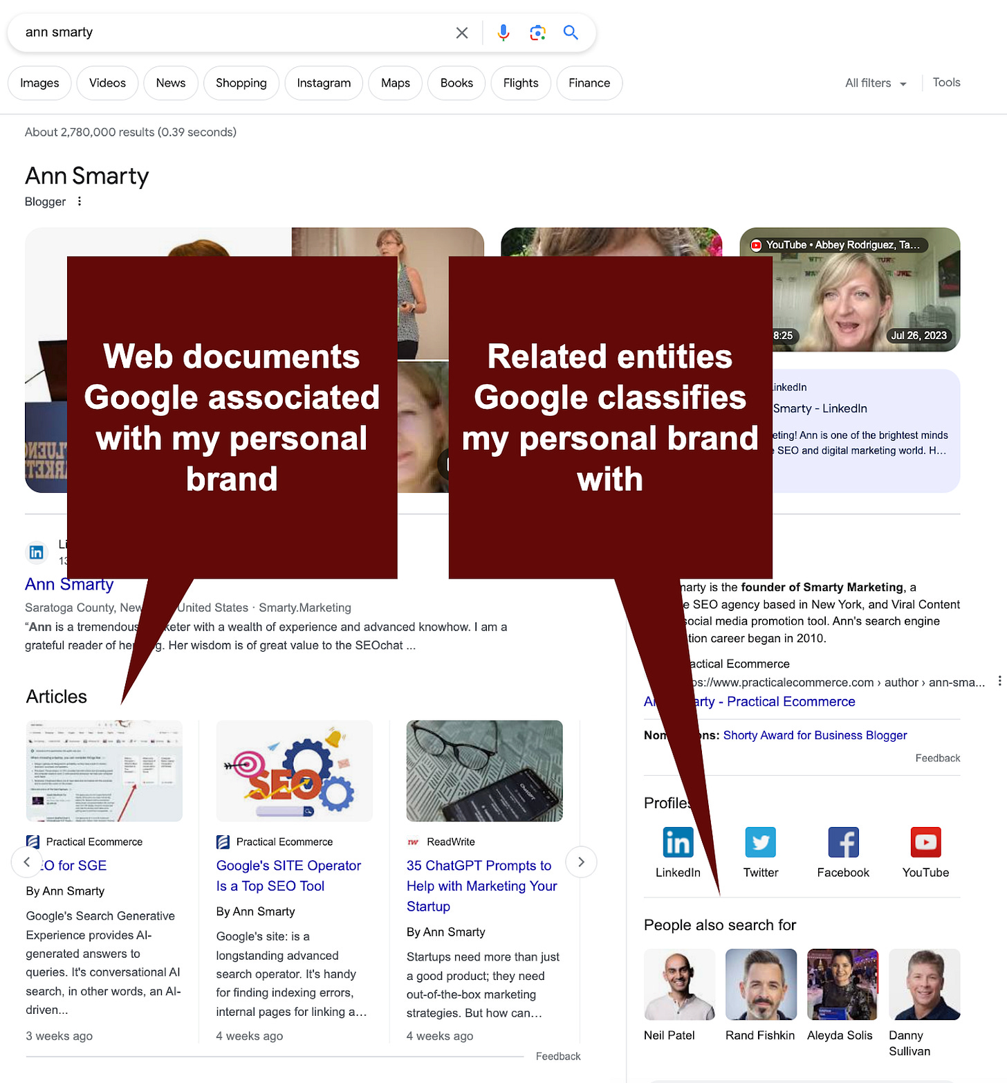 Google works by identifying and classifying entities, so if your (personal) brand is classified in a relevant category, you’re one step closer to becoming a topical authority.
