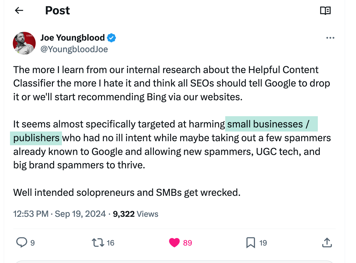 It is not just me who noticed that helpful content system m hits the smallest publishers, i.e. those who never had time or budget to become brands and build links.