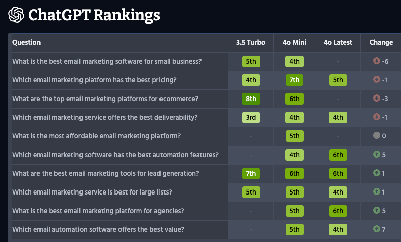 Your report looks very much like a rank tracking tool, allowing you to see where your brand is included in answers and where you rank in those answers: