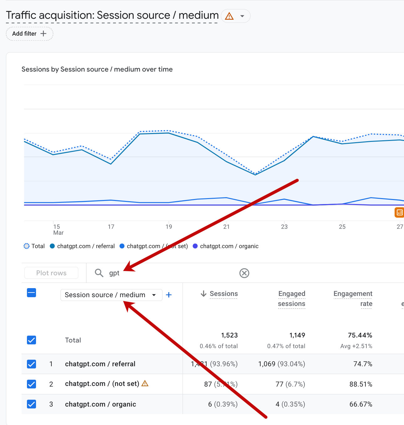 This will filter the list of landing pages to those generating that traffic from ChatGPT.
