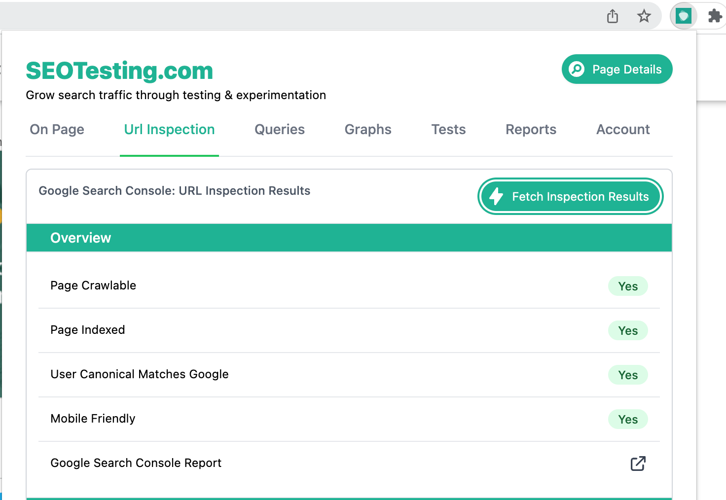 You can also use the URL inspection tool from the extension which makes a quick SEO health check incredibly quick and easy.