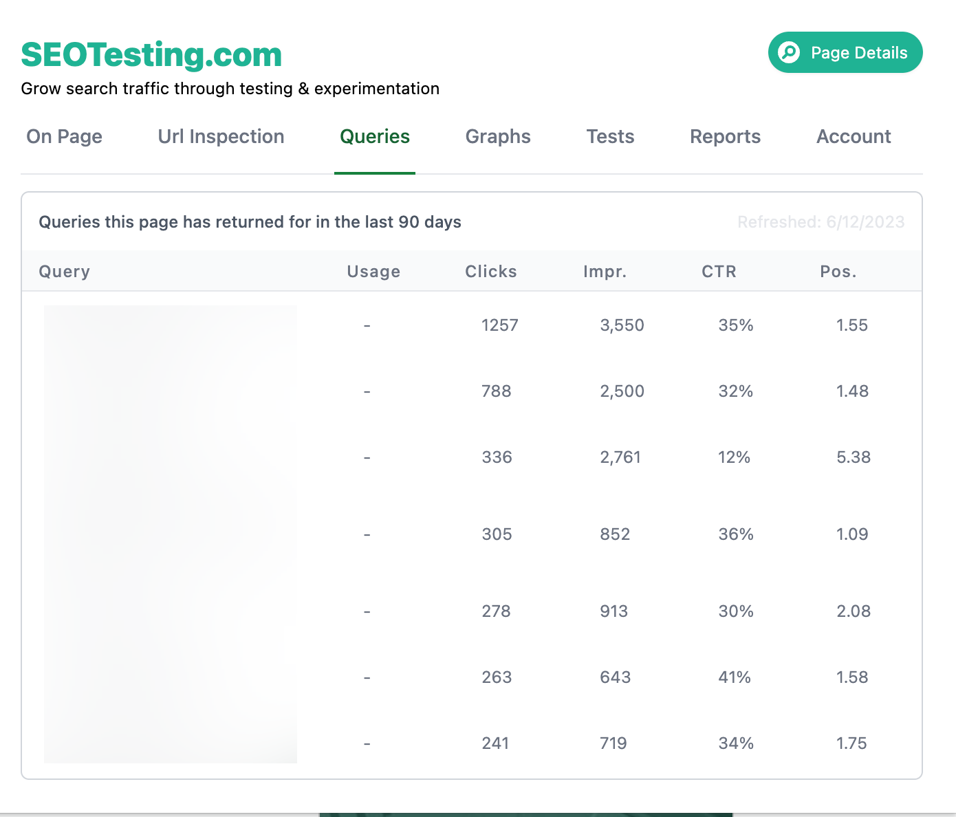 Now you can click any page on the list, select the “Queries” tab, and click the “Clicks” header twice to see the queries that dropped for you.