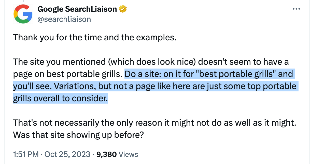 This conversation happened right after the September Helpful Content update which was ALL about not targeting search engines.