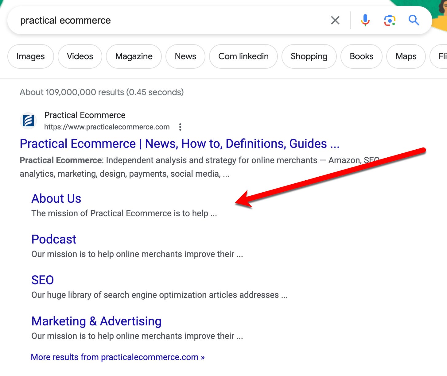 Another clue of a well-established site is sitelinks triggered for a brand search but this is not such a strong signal as the Knowledge Panel.